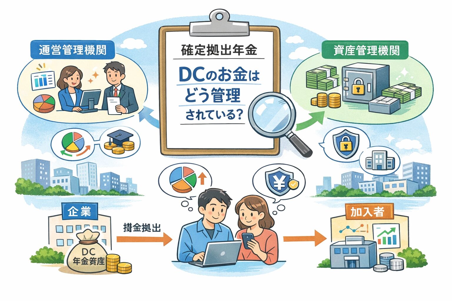 確定拠出年金(DC)は、老後に向けた資産形成のための制度です。企業型DCでは、会社が掛金を拠出しますが、そのお金を会社が直接管理しているわけではありません。実際には、複数の専門機関が役割を分担しながら、安全に管理・運用されています。